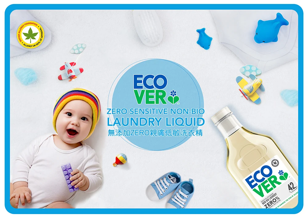 宜珂 Ecover Zero產品系列,不添加任何香料、香精和色素,特別針對過敏性體質或是敏感性肌膚使用,Ecover產品為安全、健康、不傷害人體及自然環境,同時通過低敏感測試。